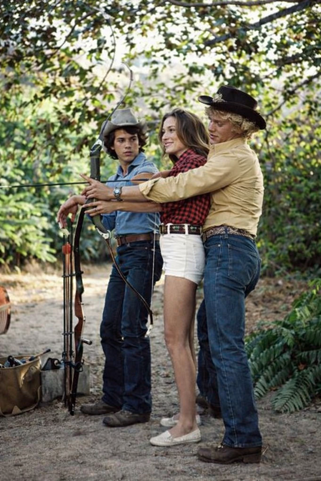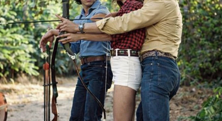 At first glance, this scene feels simple and natural. Three people stand outdoors, surrounded by trees and soft light, sharing what looks like a relaxed moment of learning or practicing archery. Everything appears calm and straightforward.